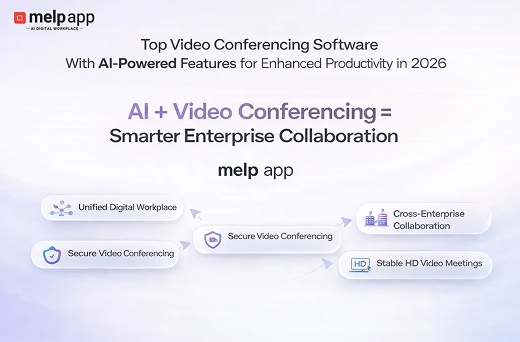 Top video conferencing software with AI-powered features for enhanced productivity are melp app, Google Meet, Zoom, and Microsoft Teams. Among these four, melp app works on a unique approach reflected in its name, Multi-Enterprise Linking Platform. It supports both internal and external collaboration across departments, vendors, clients, and partners. Businesses can conduct secure video conferencing
