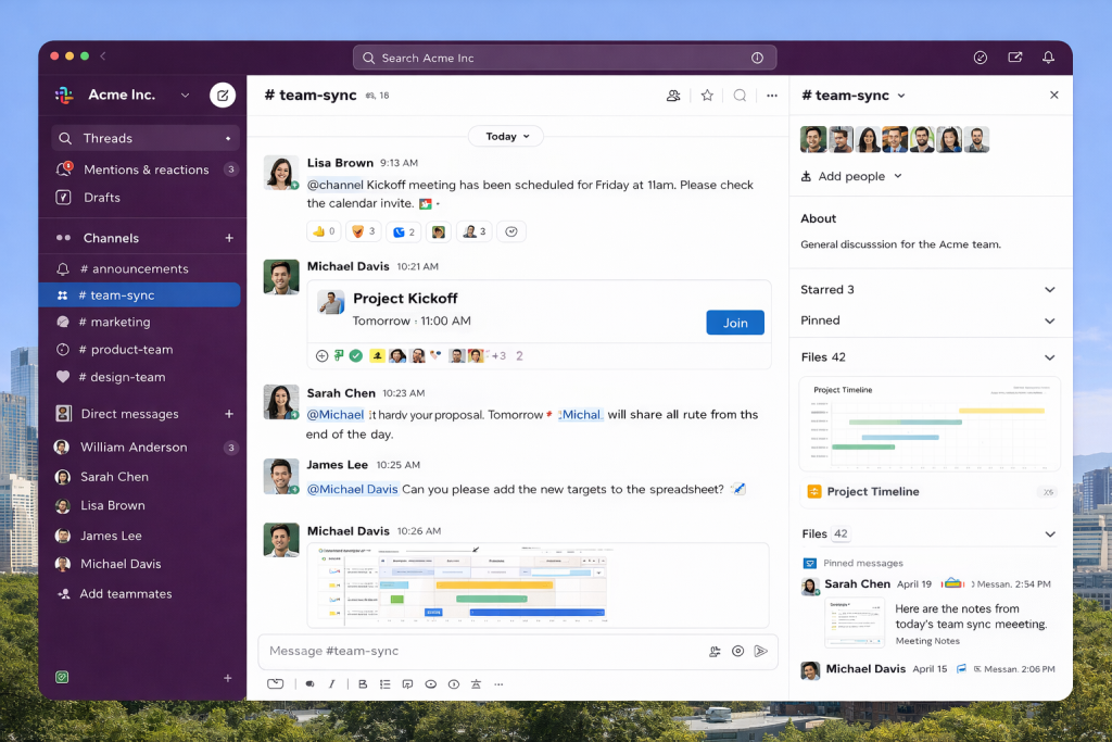 Slack is frequently chosen as a Microsoft Teams alternative by organizations that depend on fast, ongoing communication. Businesses compare Slack with Microsoft Teams when they want conversations to feel more immediate and easier to follow across teams. It works well in environments where collaboration happens continuously throughout the day.