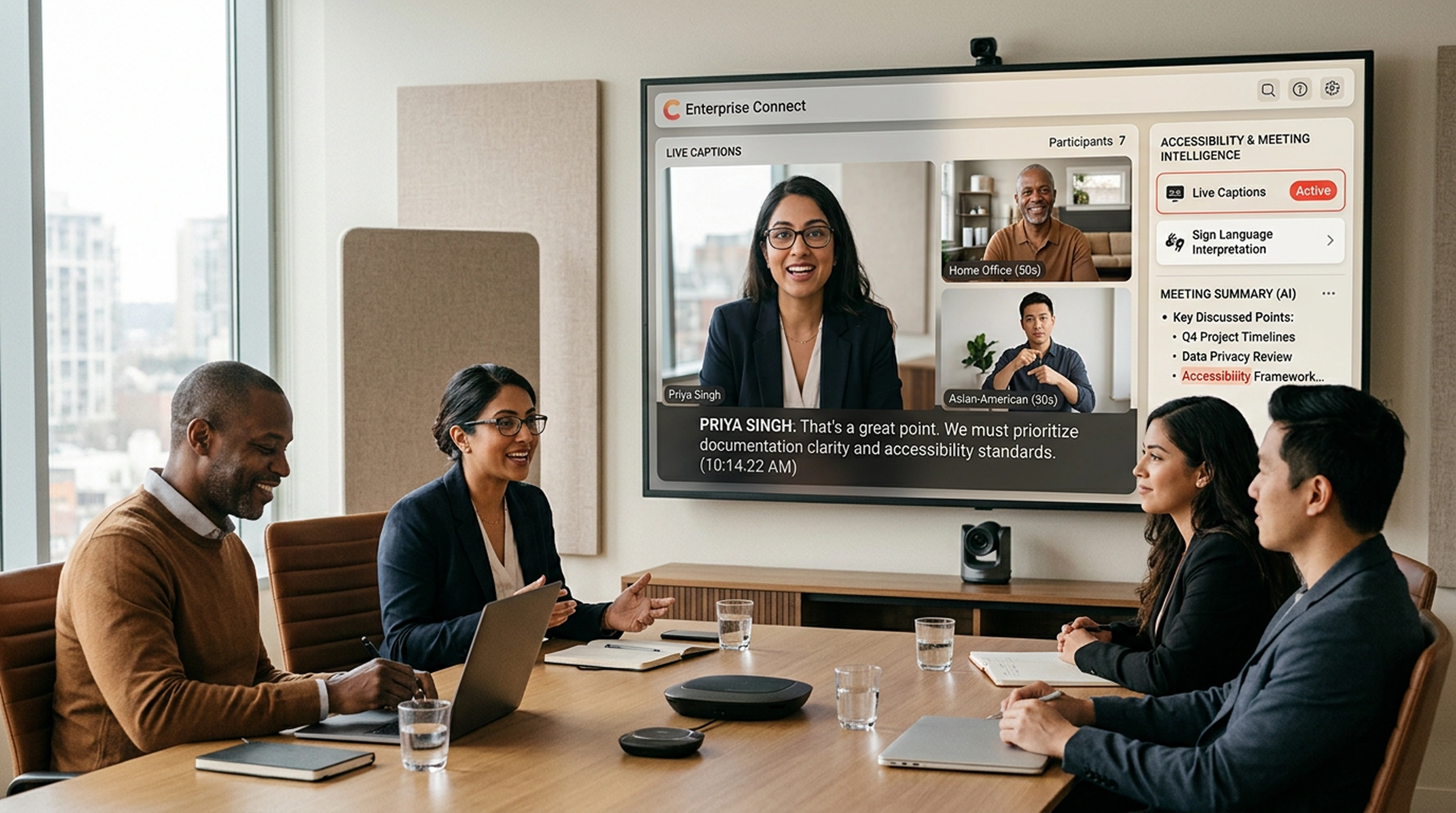 Live captions help ensure participants can follow and contribute, regardless of hearing ability.