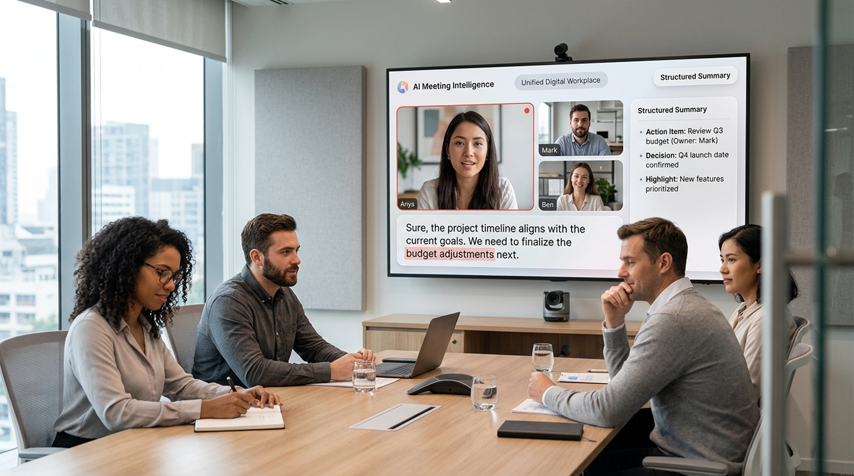 AI-generated summaries capture key discussion points, decisions, and action items—reducing the need for manual note-taking.