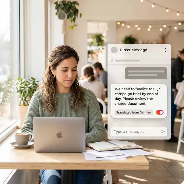 Real-time translation built into your workspace. Every message understood instantly, no extra tools needed.