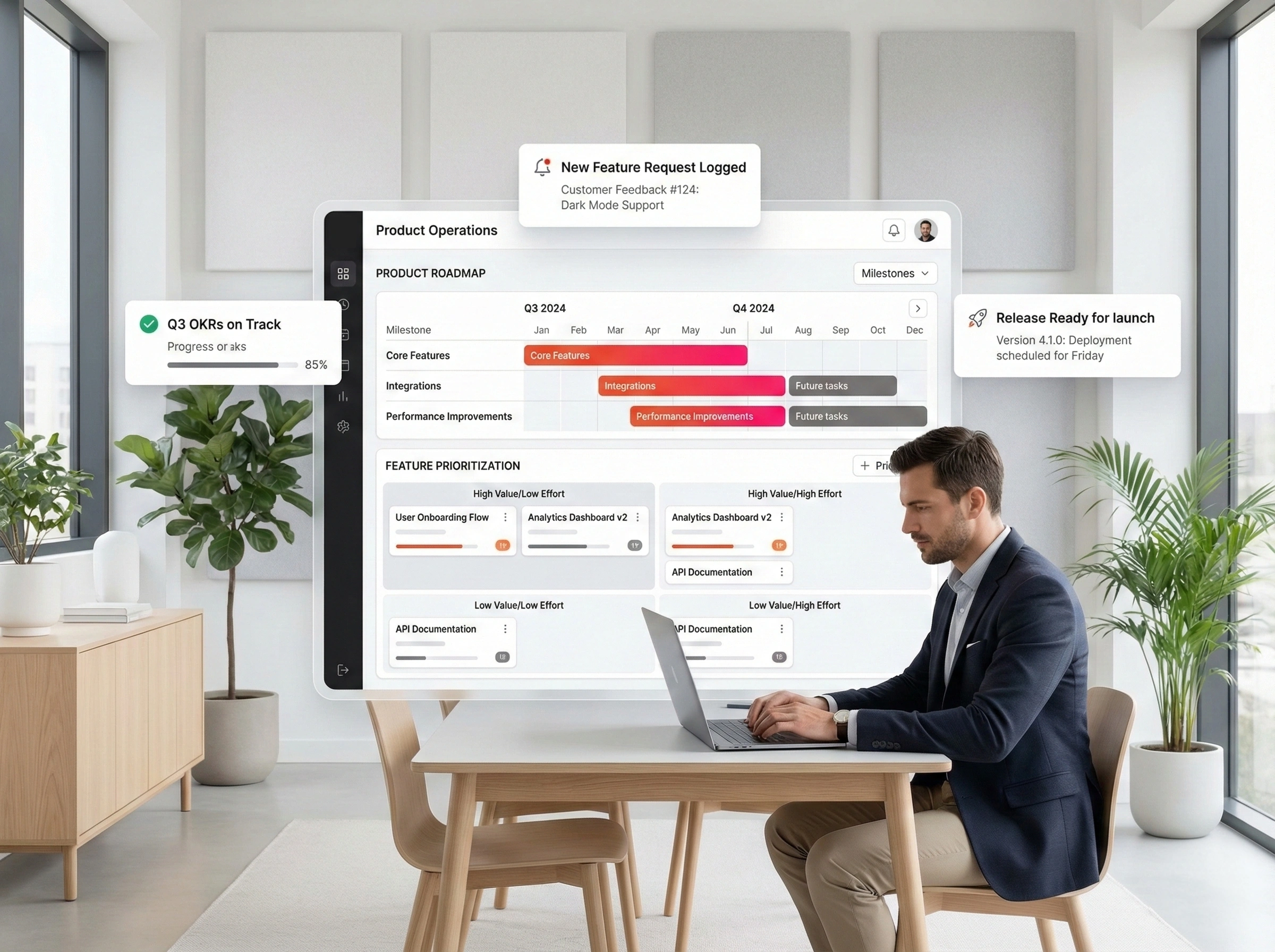 Manage product roadmaps, development priorities, and your team — all in one place.