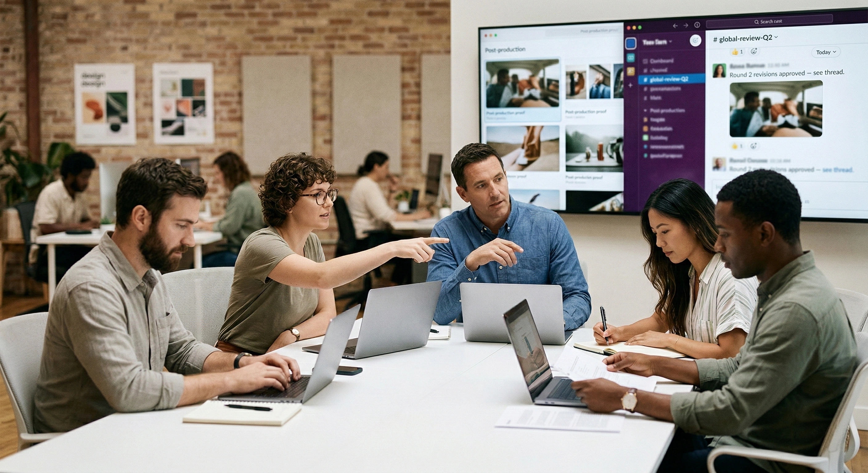 Unified reviews and approvals across 12 studios — cutting revision cycles by 40%.